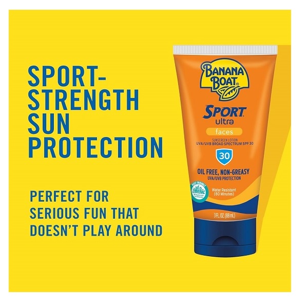 Banana Boat Sunscreen Sport Performance Faces Broad Spectrum Sun Care Sunscreen Lotion – SPF 30, 3 Ounce
