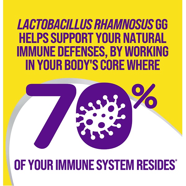 Clinically studied probiotic, Lactobacillus rhamnosus GG, reduces occasional digestive upset including gas, bloating and diarrhea.*