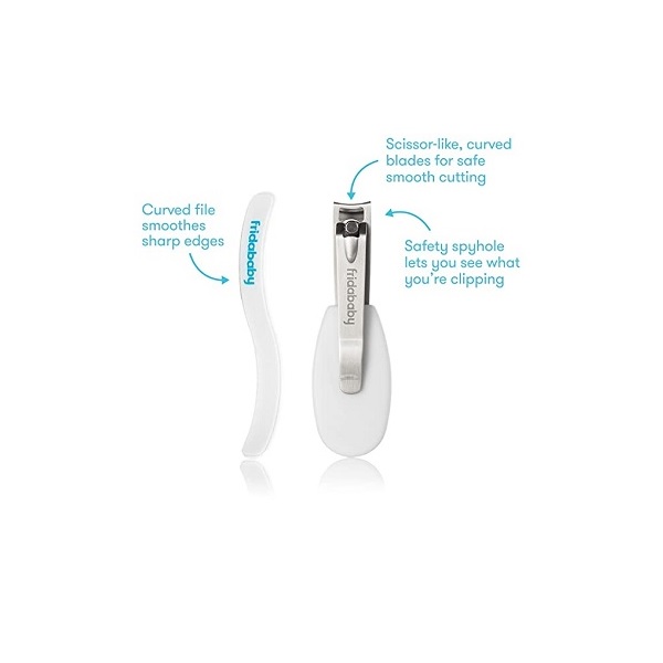 NailFrida the SnipperClipper Set solves all of your trimming trouble.. The SnipperClipper Set includes a uniquely designed nail clipper with a safety spyhole that enables parents to see exactly what you’re cutting-no more nicks. It’s curved, overlapping blades allow for safe, smooth and silent snipping. The uniquely shaped s-file is perfect for newborn nails.