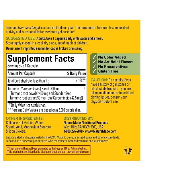 Nature Made Turmeric Antioxidant Herbal Supplement 500 Mg, 60 Capsules