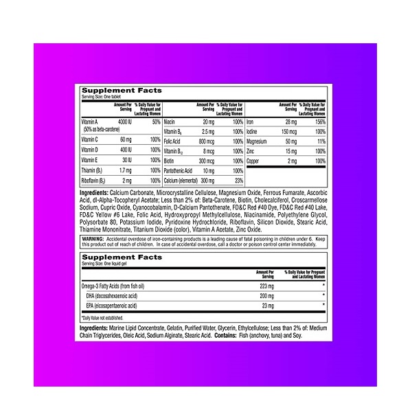 One A Day Women’s Prenatal is a complete multivitamin with DHA.