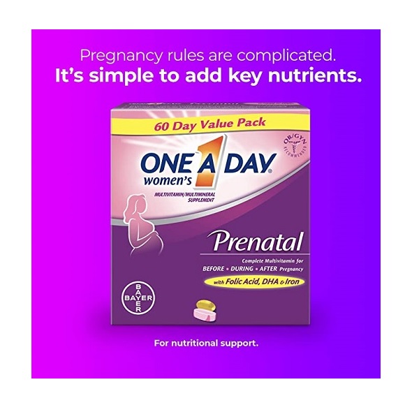 One A Day(R) Women’s Prenatal, a brand trusted by women for years, is the prenatal vitamin brand recommended #1 by OB/GYNs and Pharmacists. It’s a complete prenatal multivitamin with key nutrients like Folic Acid, DHA and Iron.