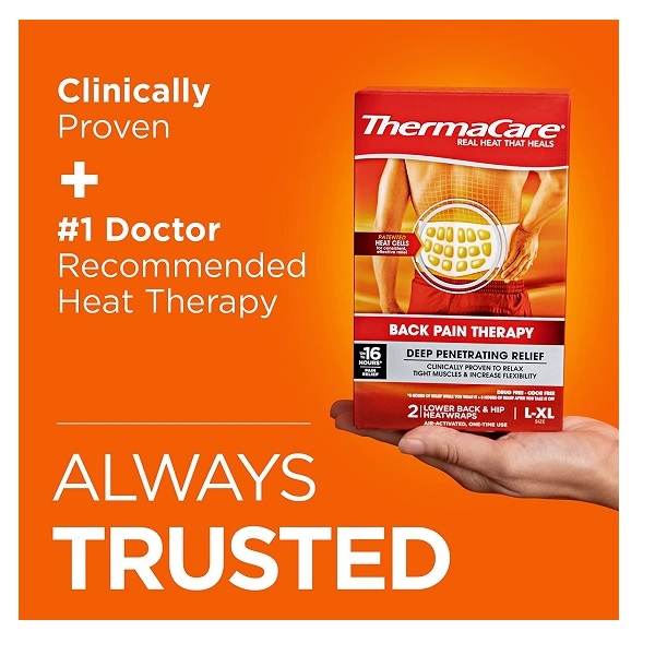Of all the heat patches for back pain out there, only ThermaCare Back Pain Therapy HeatWraps are clinically proven for pain relief, and increase blood flow to help accelerate healing. They’re portable and deliver 8 hours of continuous, real therapeutic heat and keep relieving pain for an additional 8 hours after you take them off. Ordinary heat patches for back pain merely create an artificial sensation of heat.