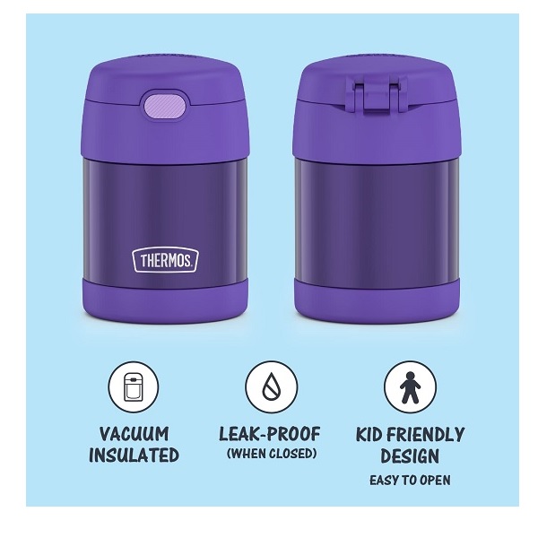 Thermos Funtainer 10 Ounce Stainless Steel Vacuum Insulated Kids Food Jar With Folding Spoon, Purple