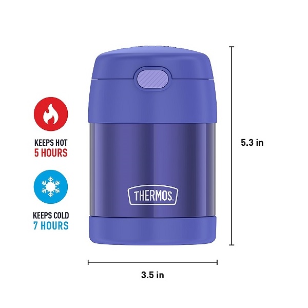- STAYS HOT OR COLD: THERMOS vacuum insulation technology retains temperature of hot or cold meals. Send them to school with their favorite soup or cold snack. This food jar keeps contents hot for up to 5 hours and cold for up to 7 hours