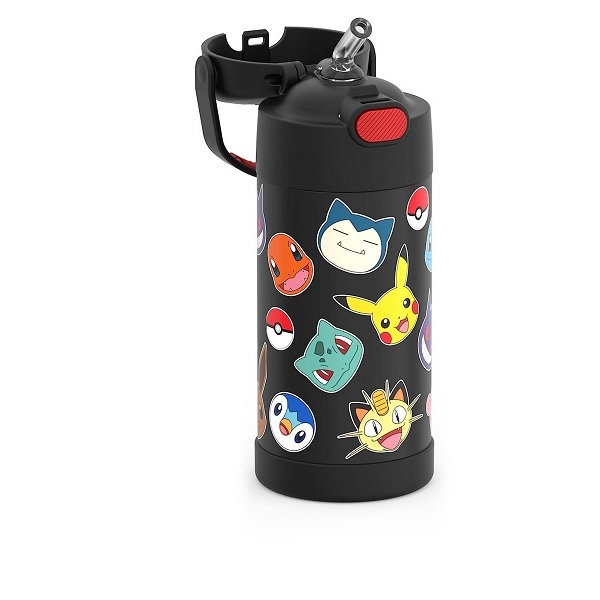 Thermos Funtainer 12 Ounce Stainless Steel Vacuum Insulated Kids Straw Bottle, Pokemon