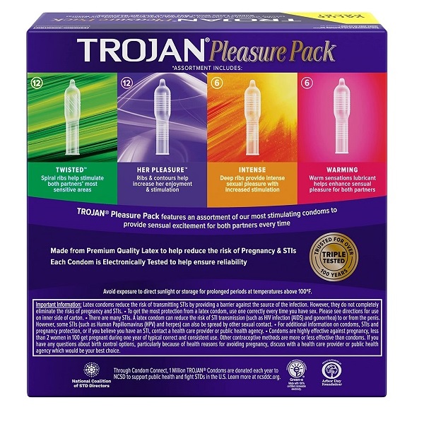 Trojan Pleasure Pack features an assortment of our most stimulating condoms to provide sensual excitement for both partners every time.