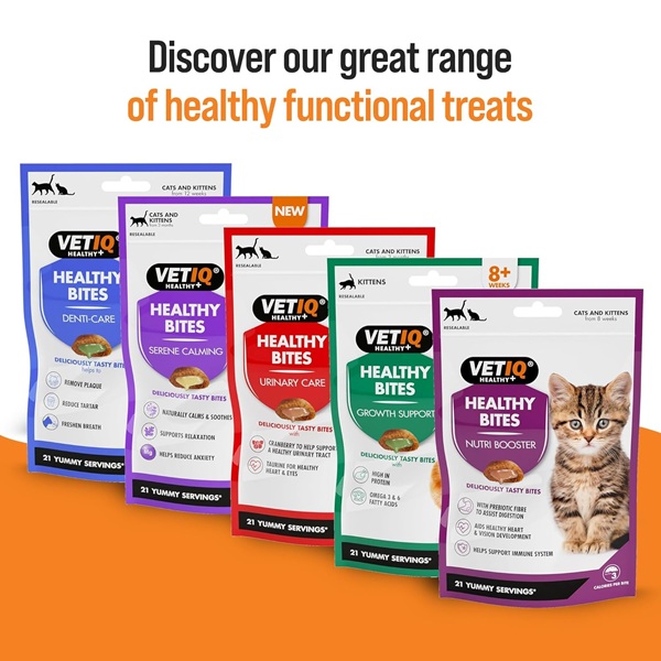 VetIQ Healthy Bites Hairball Remedy Cat Snack, 4 x 65g, Helps Prevent and Remove Cat Hairballs, Supplement for Cats Without Artificial Ingredients, Cat & Kitten Health
